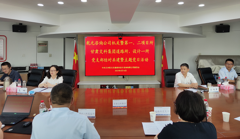 為認(rèn)真貫徹落實(shí)黨的十九大和十九屆歷次全會精神及省第十四黨代會精神,創(chuàng)新基層黨建工作載體,提高基層黨建工作水平,進(jìn)一步鞏固黨史學(xué)習(xí)教育成果,6月16日,蘭州乾元交通規(guī)劃設(shè)計咨詢有限公司機(jī)關(guān)、第一項目所、第二項目所黨支部與甘肅交科集團(tuán)設(shè)計一所、道路所黨支部聯(lián)合舉辦了主題為“支部共建聚合力 互促共贏雙提升”的結(jié)對共建暨主題黨日活動。