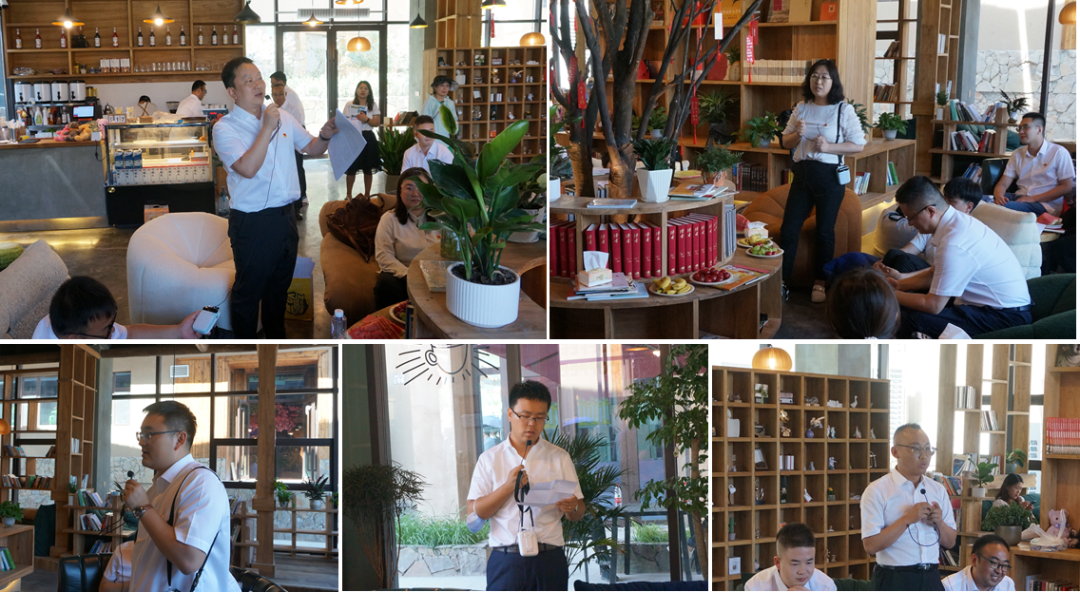 在棲云小鎮(zhèn)書吧開展的“一心永向黨,喜迎二十大”的交流研討會上,羅堯同志代表第五黨支部作主題發(fā)言。他首先對參加本次主題黨日活動的同志們表示歡迎和感謝,然后為大家深入講解并解讀了我省第十四次黨代會提出的“一核三帶”省域發(fā)展新藍圖和“四強”行動相關要點,并倡議每一位規(guī)劃工作從業(yè)者應當加強政治學習,提高政治站位,在全面把握全省重大政治任務的前提下,與時俱進,緊密聯(lián)系實際開展規(guī)劃設計工作,并著眼長遠、聚焦重點,充分發(fā)揮技術優(yōu)勢,助力全面推進甘肅經(jīng)濟社會高質(zhì)量發(fā)展。黨委辦公室主任樊曉丹同志作了“高度重視黨建工作,推動黨建工作和業(yè)務工作深度融合”的主題發(fā)言。她首先肯定了第五黨支部一直以來在黨建工作中取得的成績,并鼓勵支部應當百尺竿頭更進一步,積極打造黨建品牌,不斷提升基層黨建工作的引領力、號召力和吸引力。團委書記劉斌同志以《回顧百年團史,匯聚青春力量》為題,講授了一堂生動的黨課,帶領大家一起走進百年團史,追尋信仰之光,勇?lián)啻菏姑?,倡議廣大團員應當緊跟黨走,擔時代之責,做新征程的奮進者、開拓者和奉獻者,傳遞青春力量,綻放青春芳華,用青春和熱血書寫新時代壯麗篇章。其他黨員及入黨積極分子也從自身學習和工作實際出發(fā),分別就基層黨建、政治理論學習、黨員先鋒模范作用發(fā)揮等方面交流了各自的所思所感。