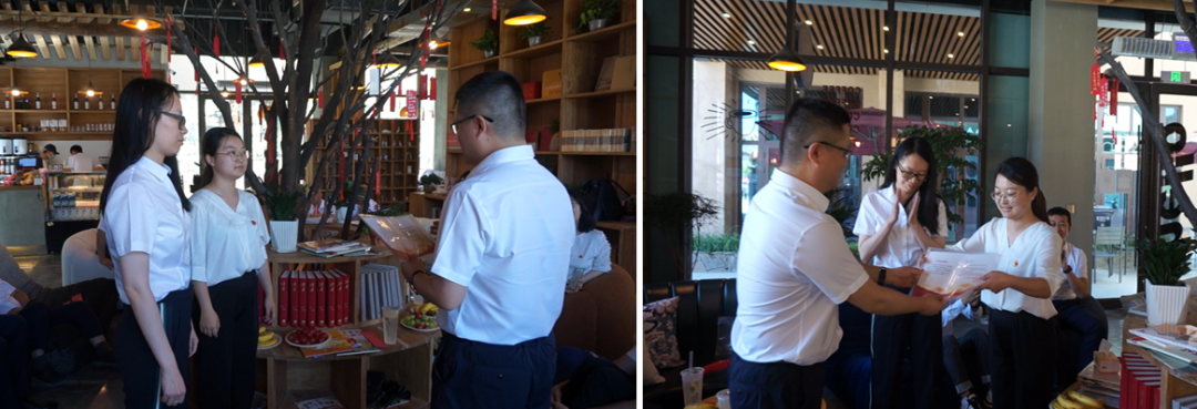 活動舉辦當天,恰逢黨員袁田同志和仲亞男同志的“政治生日”,為了讓黨員同志們切實感受到來自黨組織的溫暖與關懷,引導廣大黨員進一步強化身份意識、宗旨意識和責任意識,交流會現(xiàn)場還為兩位黨員同志舉辦了一場特別的“政治生日會”,為她們送上一張?zhí)刂频摹吧召R卡”、一枚新黨徽、一本新黨章,以極富儀式感的活動形式,提醒激勵黨員同志們要時刻謹記黨員職責,不忘初心、牢記使命,在工作和生活中時刻以黨員標準嚴格要求自己,切實發(fā)揮黨員干部的先鋒模范作用。