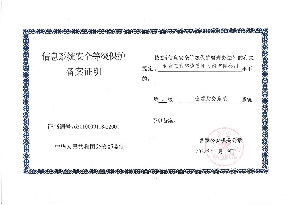自工作開展以來,相關(guān)子公司積極貫徹落實集團公司工作舉措,集團本部、建筑設(shè)計院、水電設(shè)計院、土木工程院、招標(biāo)咨詢集團、交通監(jiān)理公司合計16個信息系統(tǒng)已順利完成信息系統(tǒng)安全等級保護2.0測評備案工作,并獲得監(jiān)管部門頒發(fā)的《信息系統(tǒng)安全等級保護備案證明》。通過此次等級保護2.0測評工作,集團公司網(wǎng)絡(luò)和重要的信息數(shù)據(jù)系統(tǒng)的安全防護和保障能力得到進一步提升,為推動集團公司數(shù)字化轉(zhuǎn)型工作打下堅實的基礎(chǔ)。