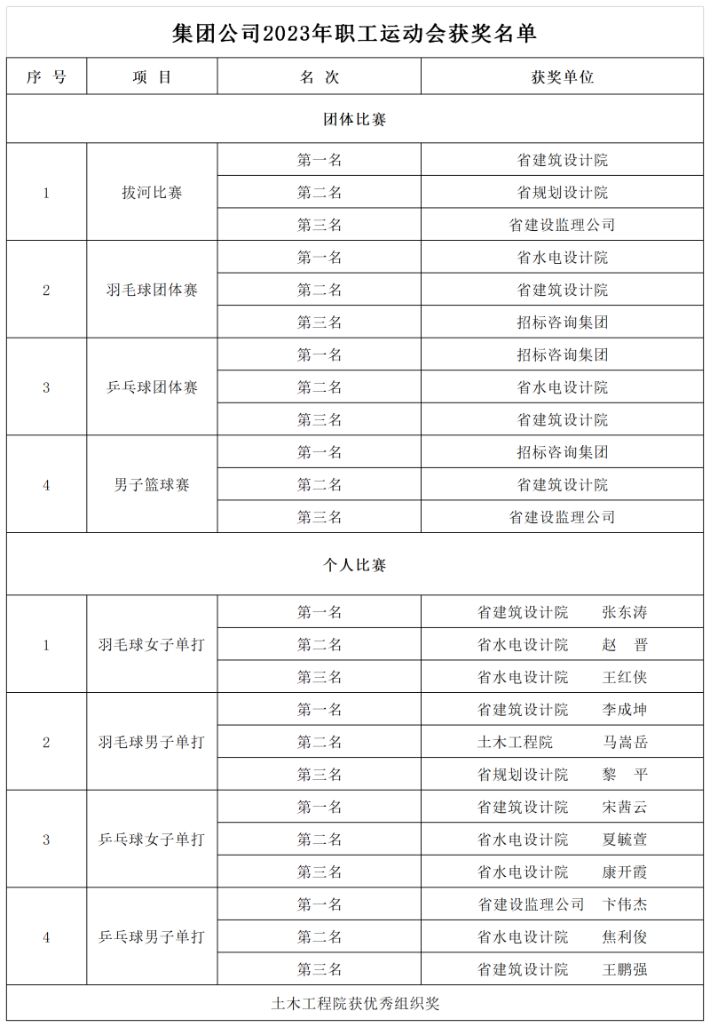 (乒乓球團(tuán)體賽一、二、三等獎)