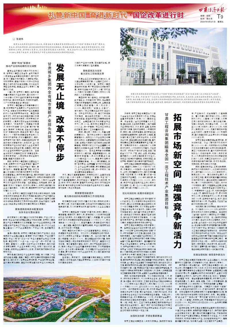 奮進(jìn)新征程,甘肅工程咨詢集團(tuán)將全面貫徹落實(shí)黨的二十屆三中全會(huì)精神,準(zhǔn)確把握改革重點(diǎn)任務(wù),持續(xù)推動(dòng)國有企業(yè)做強(qiáng)做優(yōu)做大,著力提升改革質(zhì)量和效能,不斷推進(jìn)黨的建設(shè)與生產(chǎn)經(jīng)營深度融合,聚焦勘察設(shè)計(jì)主業(yè),大力發(fā)展綠色技術(shù)、數(shù)字技術(shù)等新興產(chǎn)業(yè),加快培育新質(zhì)生產(chǎn)力,增強(qiáng)高質(zhì)量發(fā)展動(dòng)能,加快建設(shè)全國一流工程技術(shù)產(chǎn)業(yè)集團(tuán)。
