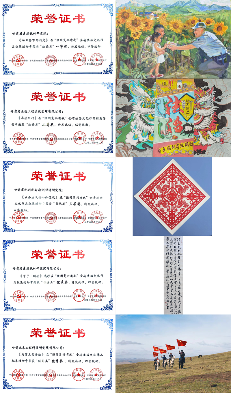 經(jīng)評選,集團(tuán)多件作品脫穎而出。省建筑設(shè)計(jì)院的《向日葵下的約定》以細(xì)膩筆觸和獨(dú)特視角,獲繪畫類一等獎;省交通監(jiān)理公司的《與法同行》生動展現(xiàn)法治守護(hù),獲繪畫類二等獎;省水電設(shè)計(jì)院的《社會主義核心價(jià)值觀》以精湛剪紙技藝,獲剪紙類三等獎;省建筑設(shè)計(jì)院的《〈管子·明法〉選抄》獲書法類優(yōu)秀獎;甘肅土木工程院的《馬背上的普法》獲攝影類優(yōu)秀獎。