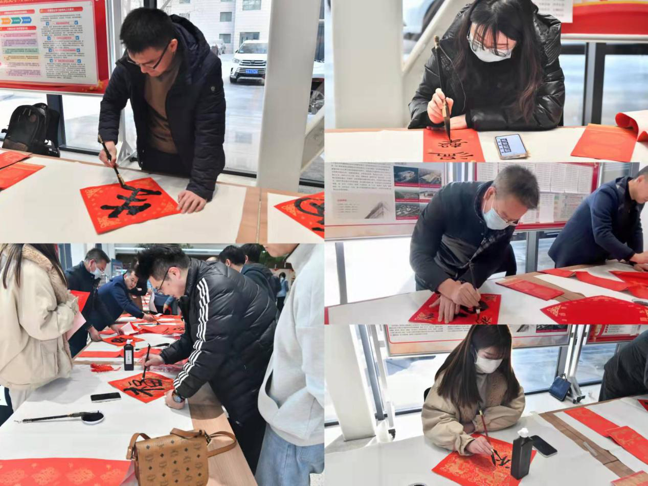 活動(dòng)中,書(shū)法愛(ài)好者潑墨揮毫,傾注新春祝福于筆墨間,草書(shū)、行書(shū)、楷書(shū)、書(shū)寫(xiě)吉祥,福字、財(cái)字、樂(lè)字皆是祝愿。廣大職工爭(zhēng)相挑對(duì)聯(lián)、晾對(duì)聯(lián)、收對(duì)聯(lián),忙得不亦樂(lè)乎,個(gè)個(gè)喜笑顏開(kāi),呈現(xiàn)出一副熱鬧喜慶的景象。