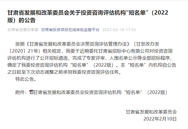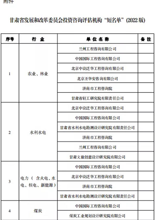 近日,省發(fā)改委公布2022年進(jìn)入省發(fā)改委投資咨詢評估機(jī)構(gòu)企業(yè)名單,甘肅省水利水電勘測設(shè)計(jì)研究院有限責(zé)任公司成功入圍三個(gè)行業(yè)板塊。