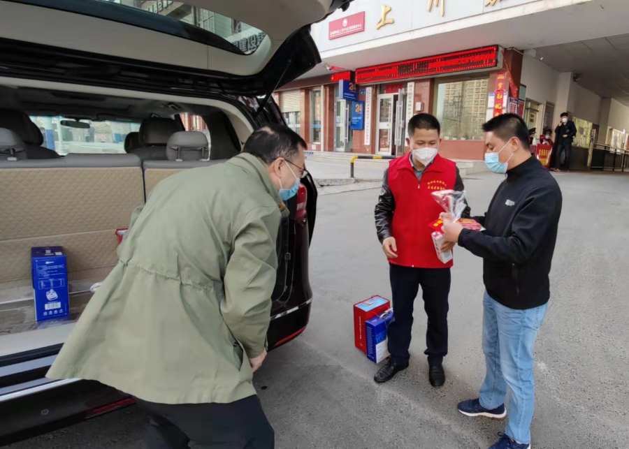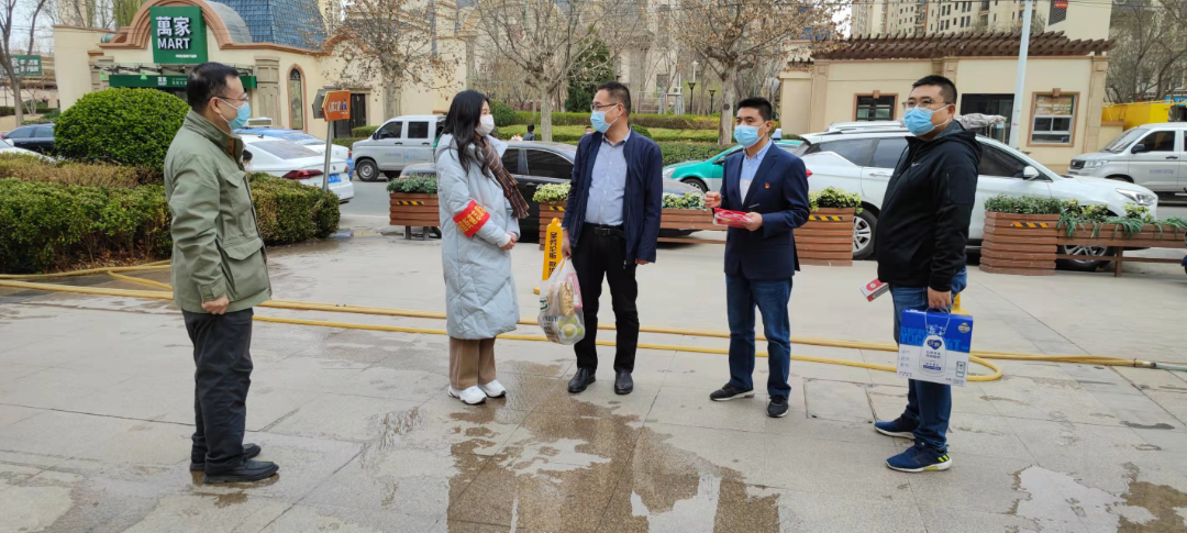 每到一個社區(qū)志愿服務點,陳啟和都詳細詢問了志愿者工作開展情況及用餐保障情況,并為志愿者送上保溫杯、食品和水果。來到萊茵小鎮(zhèn)小區(qū)時,正趕上上午全員核酸工作結束。一身“清涼”打扮的王賢亮,在捂得嚴嚴實實的人群中顯得格外亮眼。因為工作時還要套上防護服,即使天氣冷,他也只能身著單衣。透過口罩,依然能感受到他陽光燦爛的笑容,和在工作崗位上做技術質(zhì)量服務、工會工作時一個樣兒。辦公室的曹陽在封控小區(qū)參與志愿服務,承擔著核酸檢測、為封管居民配送生活必需品和數(shù)據(jù)統(tǒng)計上報等工作,每天一棟樓一棟樓的登記,挨家挨戶的排查,工作更繁雜也更辛苦。按照社區(qū)防控要求,雖然不能把慰問品親自交到她的手上,慰問組也通過電話送去了慰問和關懷,并一再叮囑她,要做好自我防護。