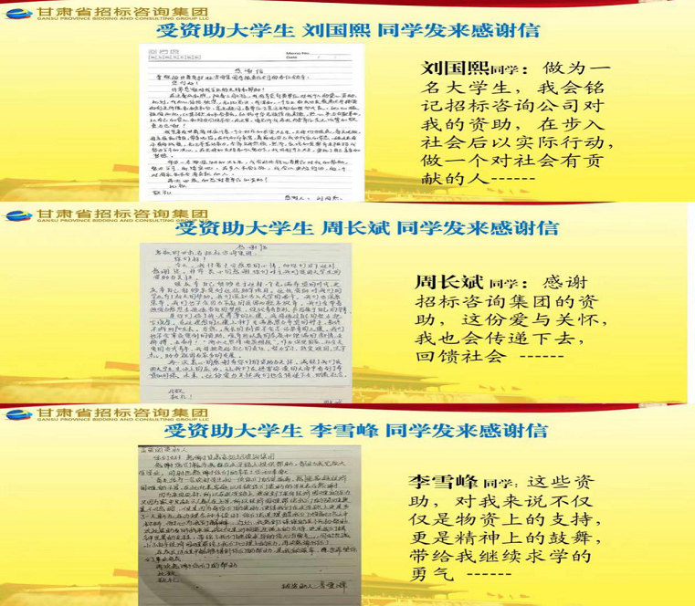 捐資助學(xué),功在當(dāng)代,利在千秋。受資助的貧困大學(xué)生紛紛發(fā)來感謝信,誠摯表達(dá)他們及家人的感激之情,表示會努力學(xué)習(xí),將來更好回報(bào)社會。