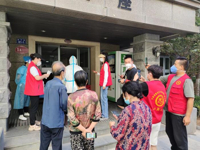 盛元小區(qū)一共有5個(gè)單元,500多戶,2000多人;新港城小區(qū)屬于城關(guān)區(qū)比較大的居民小區(qū),分為ABCDE五個(gè)區(qū),共有300多個(gè)單元,5200多戶,16000多人居住。面對(duì)這些情況,陳萬國(guó)、李朋袀和白萬景等志愿者沖在前面,維持檢測(cè)秩序,布置核酸檢測(cè)點(diǎn)位,分發(fā)甘肅抗疫中藥包,投放樓棟垃圾,匯總登記問題并與社區(qū)和醫(yī)務(wù)人員溝通逐一解決。接受核酸檢測(cè)的隊(duì)伍中,有上至八九十歲的老人,下至三四歲的孩童,還有行動(dòng)不便的病人,他們總是無微不至,耐心引導(dǎo),尤其在遇到一些行動(dòng)不便的老人和病人時(shí),他們主動(dòng)上前攙扶,把貼心的溫暖送給每一名群眾。