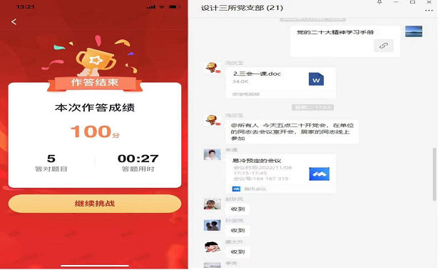 以賽促學,強技礪能精研細琢。各黨支部組織黨員通過學習強國“黨的二十大精神答題活動”“黨的二十大精神應知應會百題”等形式,開展線上答題競賽,全面檢驗黨員干部對黨的二十大報告內(nèi)容的掌握程度,進一步增強黨員干部對學習黨的二十大精神的認識和重視,推動黨的二十大精神入腦入心,鞏固提升學習效果,以賽促學、以知促行,用黨的二十大精神武裝頭腦、指導實踐、推動工作。