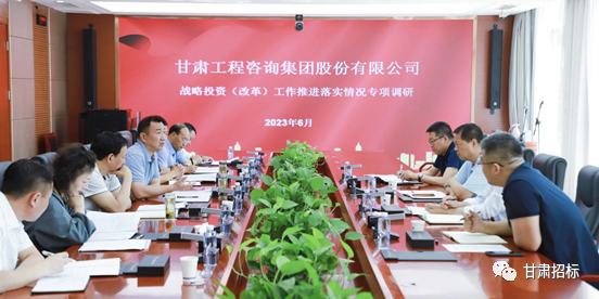 6月13日,甘肅工程咨詢集團(tuán)黨委委員、副總經(jīng)理劉立昱,董事會秘書柳雷,戰(zhàn)略投資部(改革辦)部長馬靈會一行到招標(biāo)咨詢集團(tuán)對戰(zhàn)略投資(改革)工作推進(jìn)落實(shí)情況、董事會建設(shè)和運(yùn)行情況開展專項(xiàng)調(diào)研。