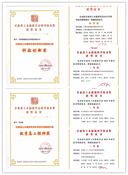 近日,從甘肅省建設(shè)行業(yè)科技創(chuàng)新成果研討會暨頒獎典禮上傳來喜訊:省建筑設(shè)計院被授予“科技創(chuàng)新獎”,設(shè)計的甘肅科技館榮獲“綠色建筑示范工程特等獎”,開展的“住宅建筑引入碳匯系統(tǒng)的創(chuàng)新研究”“多維度下小戶型住宅建筑創(chuàng)新研究”“超高層建筑電梯井道隔墻的井道多效化構(gòu)造研究”等研究榮獲“2022年科學(xué)技術(shù)獎三等獎”;馮志濤榮獲“優(yōu)秀總工程師獎”,上官存霞等8人分別獲得“第四屆中西部地區(qū)土木工程師(建筑師)”“科技貢獻(xiàn)獎”“科技英才獎”。