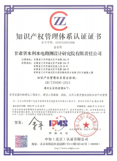 近日,省水電設(shè)計院順利通過《企業(yè)知識產(chǎn)權(quán)管理規(guī)范》(國家標(biāo)準(zhǔn)GB/T 29490-2013)的認(rèn)證評審工作,取得《知識產(chǎn)權(quán)管理體系認(rèn)證證書》,標(biāo)志著在知識產(chǎn)權(quán)創(chuàng)造、運用、管理和保護(hù)方面邁上新臺階。