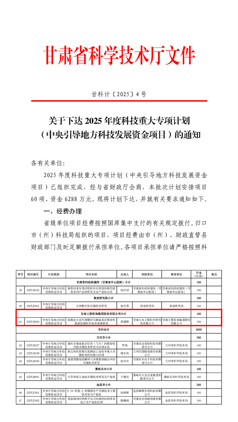 近日,甘肅省科技廳公布了2025年度科技重大專項計劃(中央引導地方科技發(fā)展資金項目)立項名單,土木工程院主持申報的“資源化大宗利用煤矸石制備高活性綠色低碳膠凝材料技術(shù)成果轉(zhuǎn)化”項目成功立項。